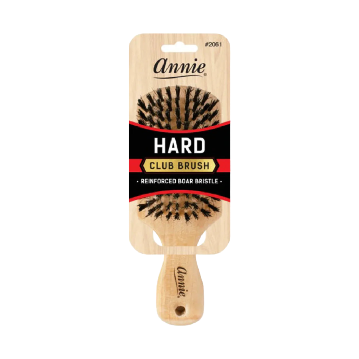 Unlock your hair's full potential with the Annie Hard Club Brush Light Brown. This brush is expertly designed with a polished natural hardwood handle and a powerful combination of 50% boar bristle and 50% firm nylon bristles to tackle any hair challenge.