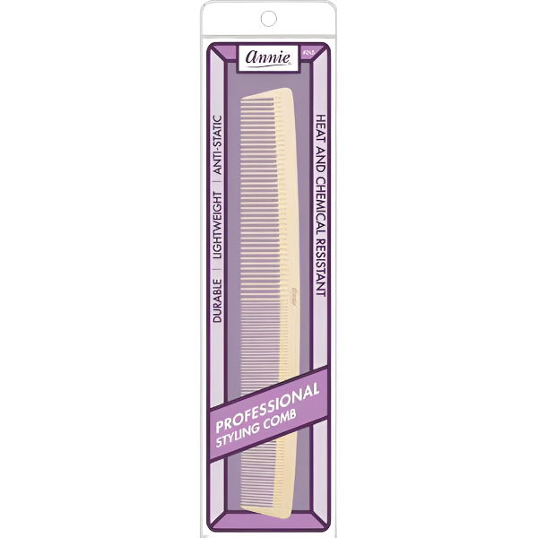 Introducing the Annie Professional Styling Comb, perfect for professional hair stylists. With heat and chemical resistance, this versatile comb is designed to last through all your styling needs. Its anti-static properties and lightweight design make it a must-have for any stylist.