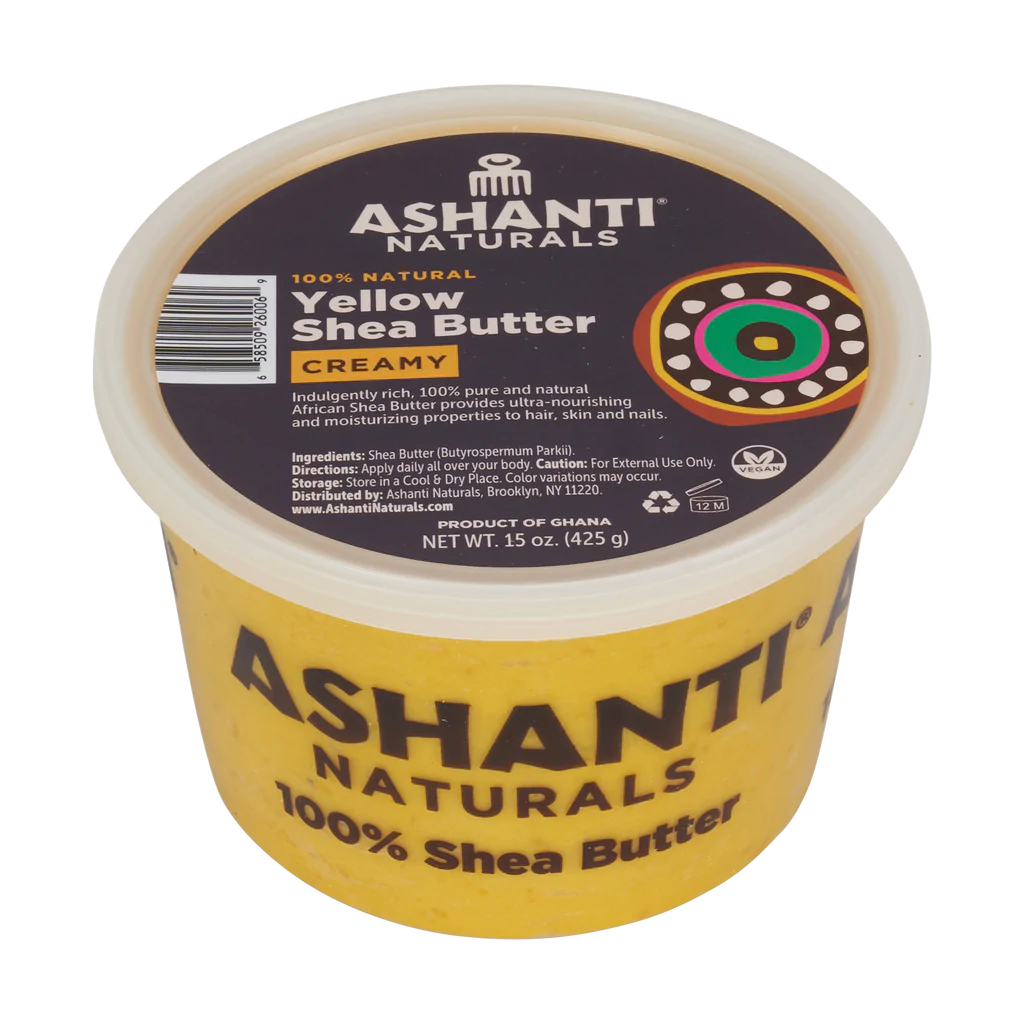 Our Ashanti Naturals Yellow Shea Butter Creamy is made from 100% pure, raw, and unrefined African shea butter. It is rich in vitamins A, E, and F, making it an essential ingredient for nourishing and restoring elasticity to the skin. This butter can also be used on hair to strengthen and repair damage, as it protects the skin from weather extremes and soothes and calms irritated or sunburned skin, reducing wrinkles and promoting overall health.