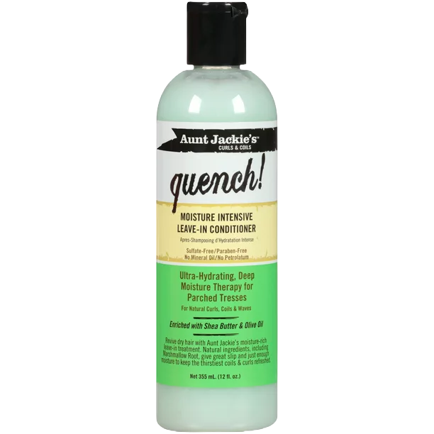 Give your hair a boost of hydration with Aunt Jackie's Quench Moisturize Intensive Leave-in Conditioner, enriched with sea butter and olive oil. This natural formula includes marshmallow root for added slip and moisture, perfect for reviving dry coils and curls. Trust Aunt Jackie's to keep your hair looking refreshed and nourished.