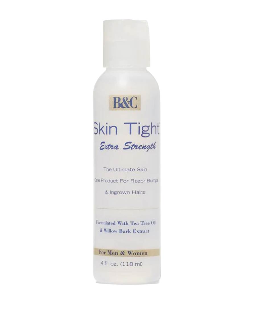 Improve the overall condition of your skin and treat common hair removal issues with B&C Skin Tight Extra Strength 4oz! Perfect for both men and women, this formula contains tea tree oil and willow bark extract to help reduce the appearance of razor bumps and ingrown hairs from shaving, waxing, or electrolysis. Suitable for men's faces and necks, as well as women's legs, underarms, and bikini lines.
