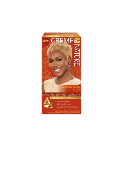 Reveal vibrant, permanent hair color with Creme of Nature Moisture Exotic Shine Color. Made with Argan Oil from Morocco and our Strengthening Micro-Sphere Technology, this hair color nourishes and strengthens your locks while preventing damage, dryness, and breakage. Enjoy ultimate conditioning and up to 100% gray coverage with 11 high-intensity color tones. Your hair will feel stronger and healthier with a radiant, exotic shine thanks to our double Argan Oil treatments.