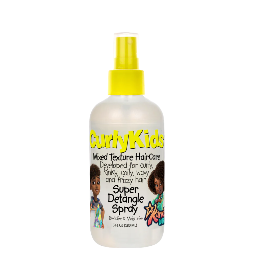 Get ready to experience amazing results with Curly Kids Super Detangle Spray! This gentle yet effective spray makes detangling curly hair a breeze. You'll notice an immediate difference as your brush or comb effortlessly glides through your curls. Plus, it helps reduce breakage and leaves all coily hair textures feeling conditioned.