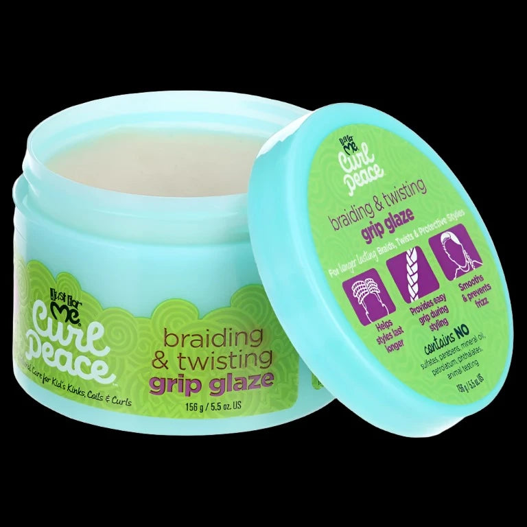 It's time to take kid's braiding, twisting and protective to a new level! This gentle yet effective grip glaze helps hold braids and twists for longer-lasting protective styles. Formulated with safe and healthy ingredients like flaxseed, avocado oil and black castor oil, hair is left nourished and neat. Makes coils, kinks and curls easier to braid and twist. Gently smooths fly-aways. Helps to promote healthier styling.