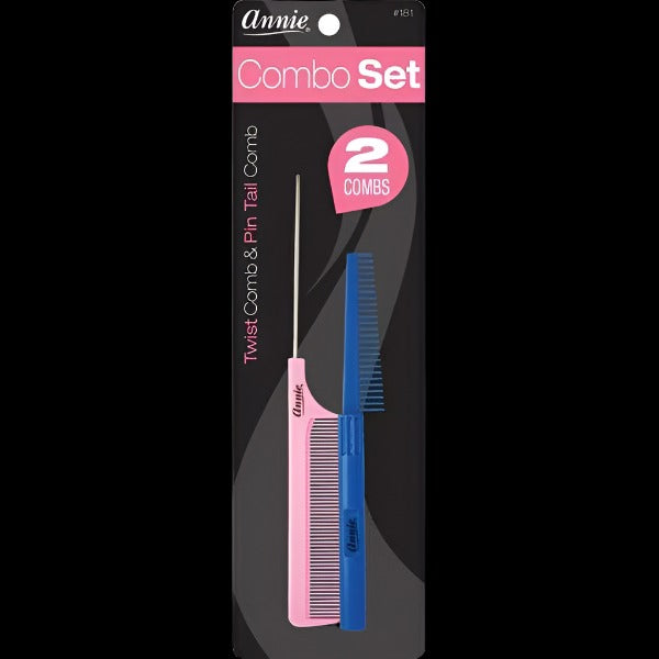 This combo set of combs features a twisting comb and a rat tail comb in various colors, perfect for styling hair of any length.