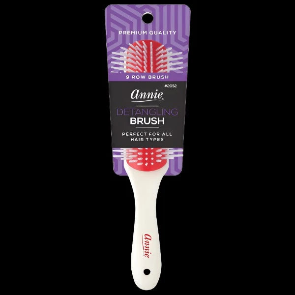 The Annie Rubber Cushion Brush 9 Row is the perfect tool for easy detangling and creating natural and heat styles. Its flexible and durable design makes it ideal for both blow-drying and enhancing curly styles. It's 9 rows provide maximum coverage making it a must-have for every hair tool kit.