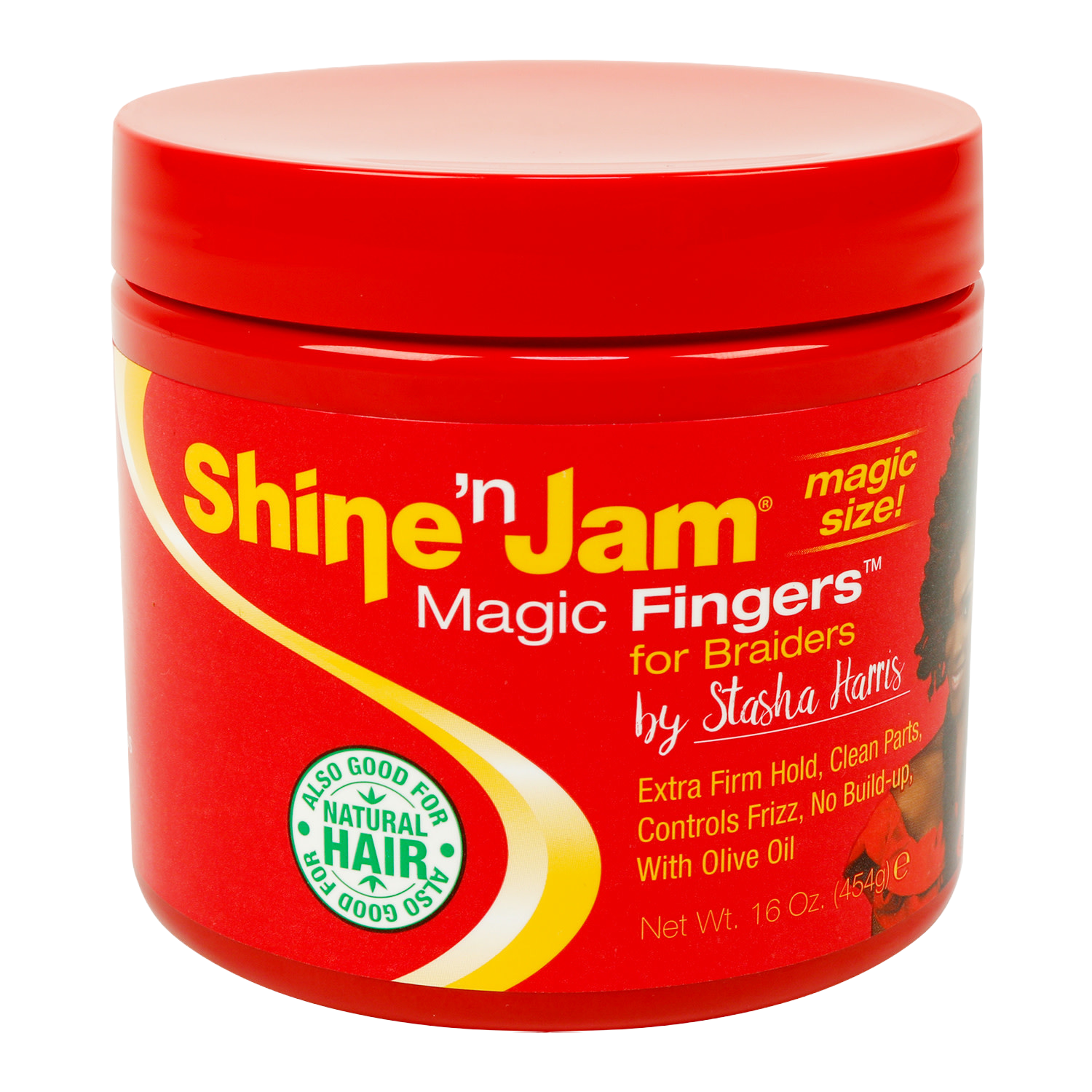 Get the perfect braids, locs, and twists effortlessly with Ampro Shine N Jam Magic Fingers Braid Gel. Its top-selling formula ensures moisturized hair and avoids any flaking. Achieve precise ponytails and partings with ease. Designed for all hair textures.