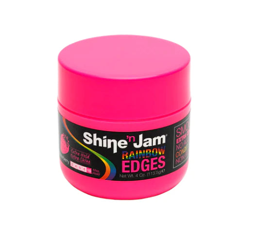 Elevate your hair game with Ampro Shine n Jam Rainbow Edges. This product provides a strong hold for sleek styles and easy parting. Say goodbye to flakes and crunchiness, and hello to perfectly controlled edges. Infused with delicious strawberry scent, your hair will look and smell amazing.